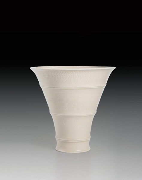 图为庞永辉作品定窑跳刀纹瓶·虚怀,获中国陶瓷工业协会第十一届中国陶瓷艺术大展金奖