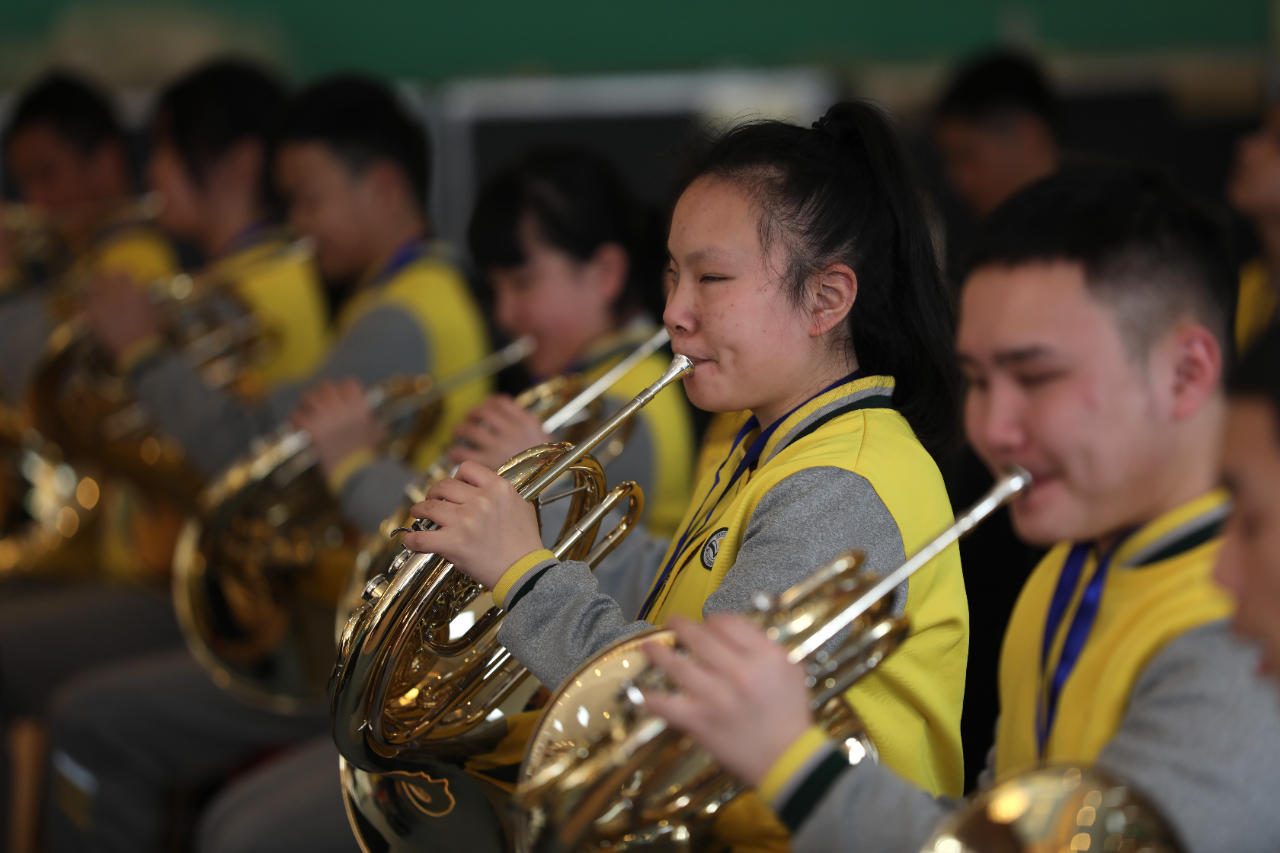 2021年11月接到演出任务后,扬帆管乐团从100余名团员中选拔出47名音准、节奏都比较好的乐手参演。从拿到乐谱到参加正式演出,只有49天时间,管乐团师生们放弃寒假休息,加紧集训,一遍又一遍的记谱、演奏、排练,师生们克服了种种困难,5天内完成了国际残奥委会会歌的首次排练。