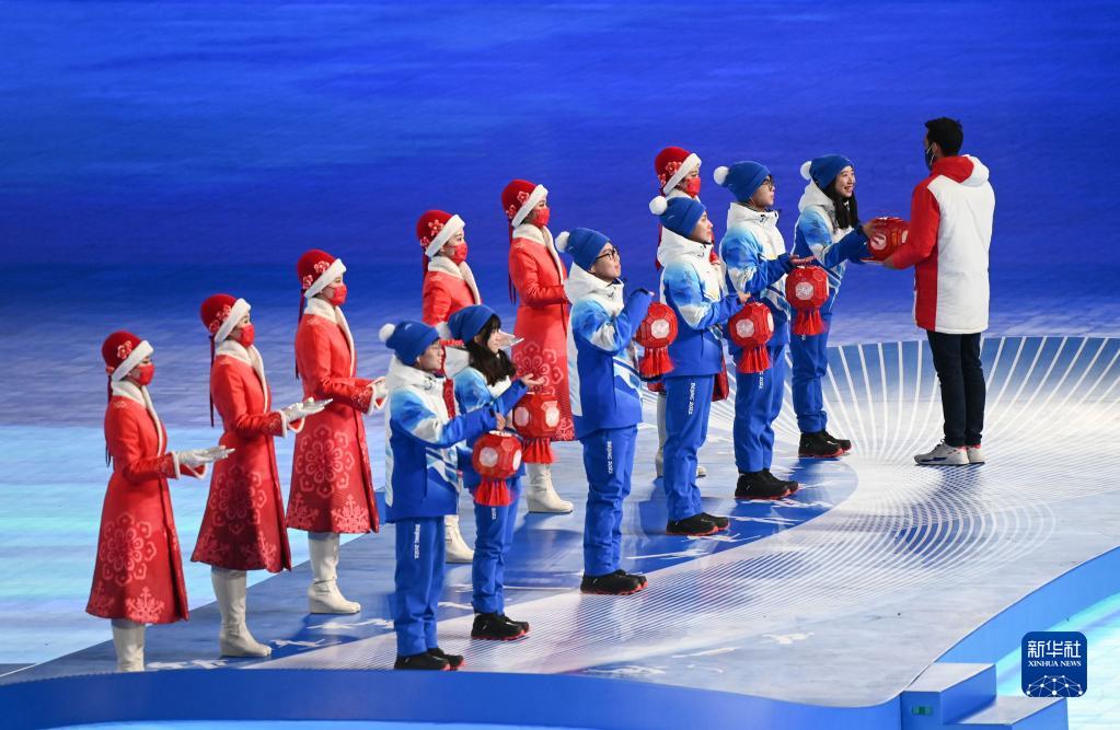 2月20日晚,北京第二十四届冬季奥林匹克运动会闭幕式在国家体育场举行。这是向志愿者致谢环节。新华社记者 熊琦 摄