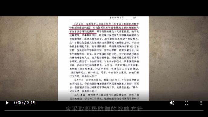 1956年3月6日至15日,中央军委召开扩大会议,彭德怀代表中央军委作《关于保卫祖国的战略方针和国防建设问题》报告,提出在未来反侵略战争中应采取积极防御的战略方针。