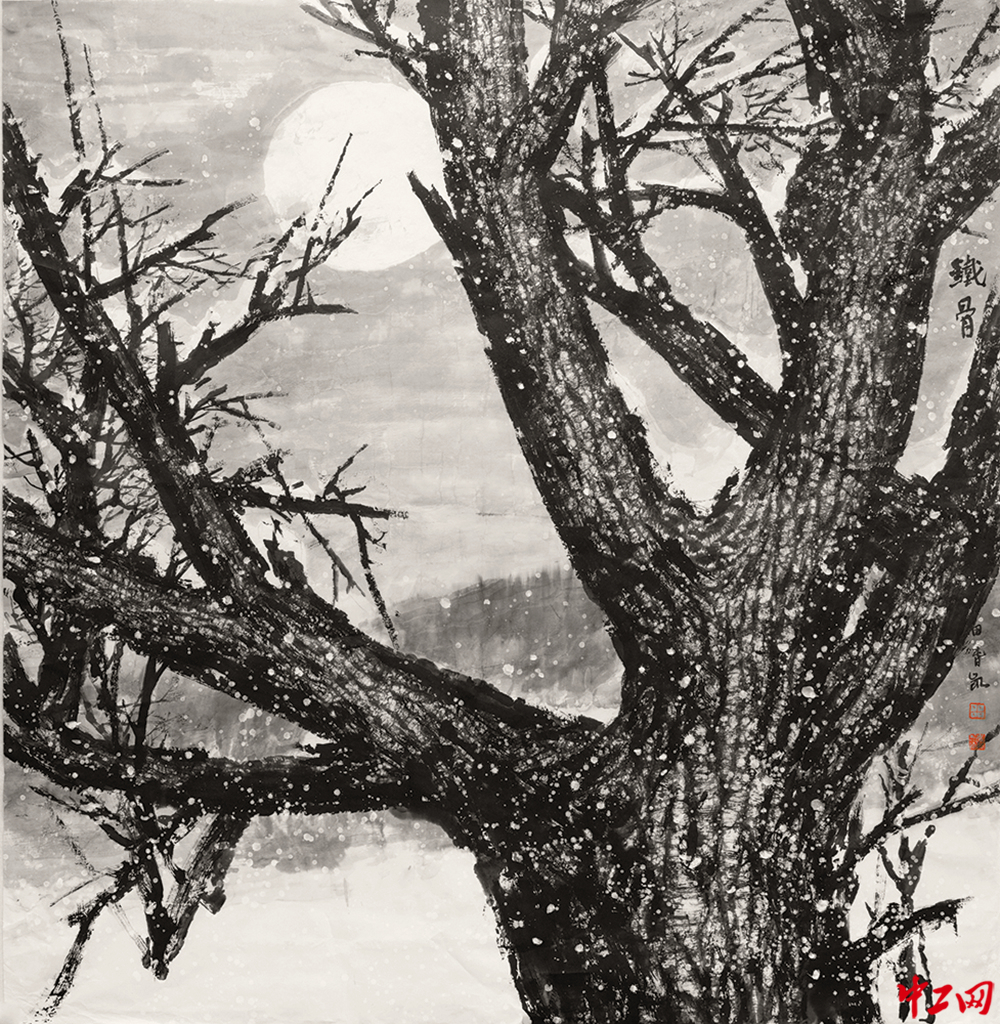 《铁骨》(国画,180cm×180cm),作者田春凯,“冰雪情·冬奥梦”全国职工冰雪主题绘画活动入围奖作品