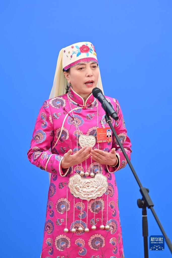 3月5日,在第十三届全国人民代表大会第五次会议举行的首场“代表通道”采访活动中,董彩云通过网络视频方式接受采访。