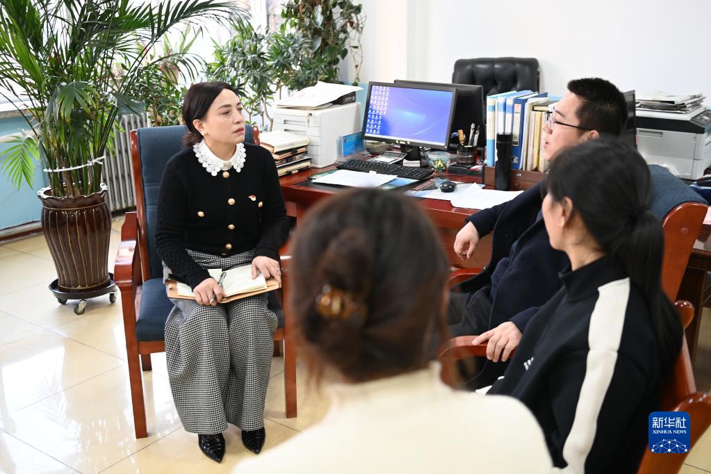 2月23日,在甘肃广播电视大学临夏分校,董彩云(左一)和老师们交流,收集建议。