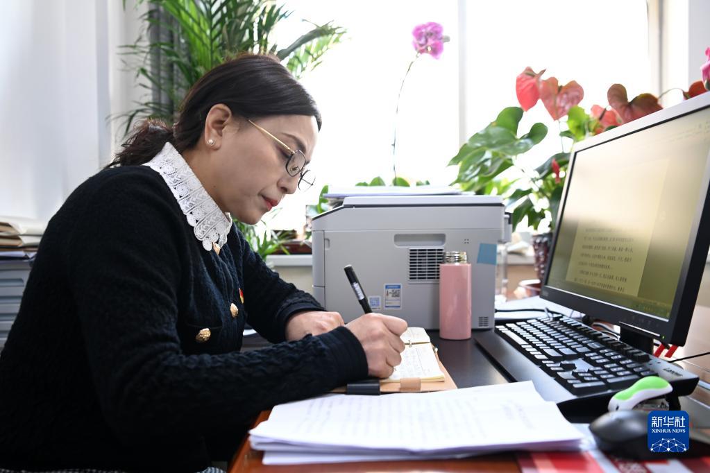 2月23日,在甘肃广播电视大学临夏分校,董彩云查看收集的建议。