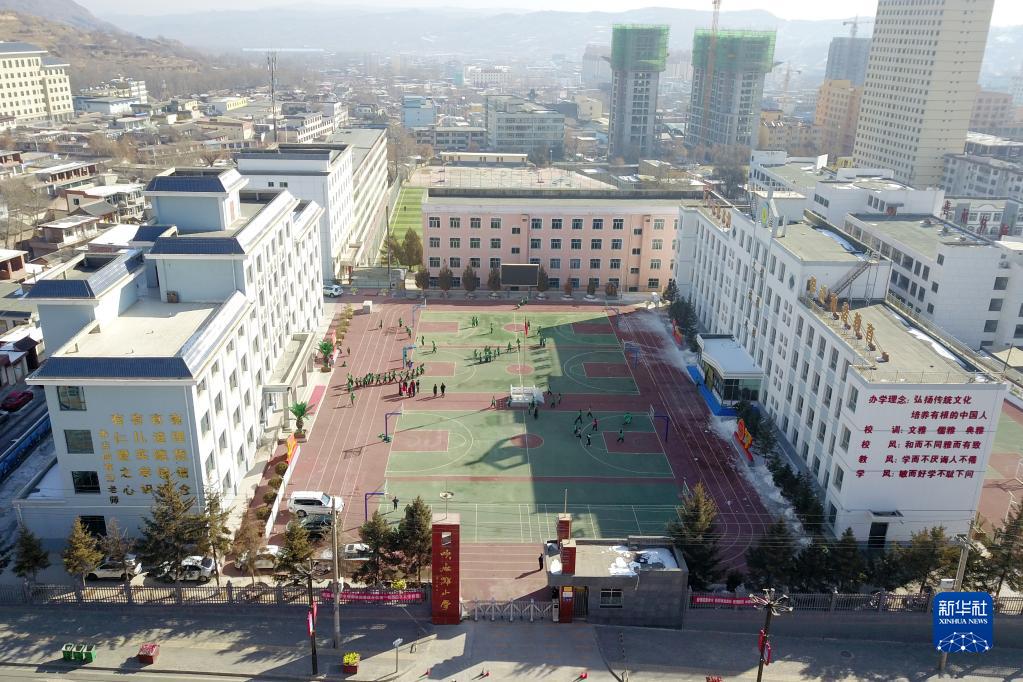 这是2月24日拍摄的甘肃临夏积石山保安族东乡族撒拉族自治县吹麻滩小学(无人机照片)。