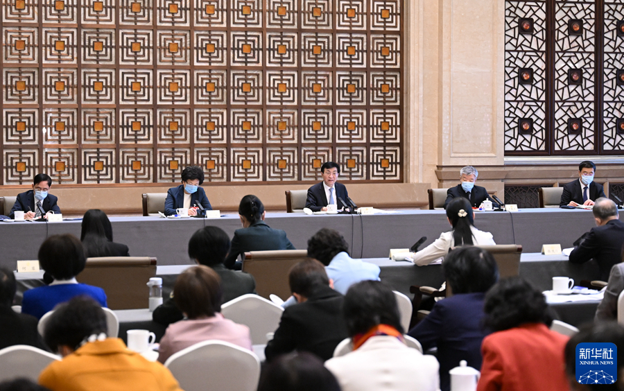 3月6日,中共中央政治局常委、中央书记处书记王沪宁看望出席全国政协十三届五次会议的共青团、总工会、妇联、青联界委员并参加讨论。新华社记者 申宏 摄