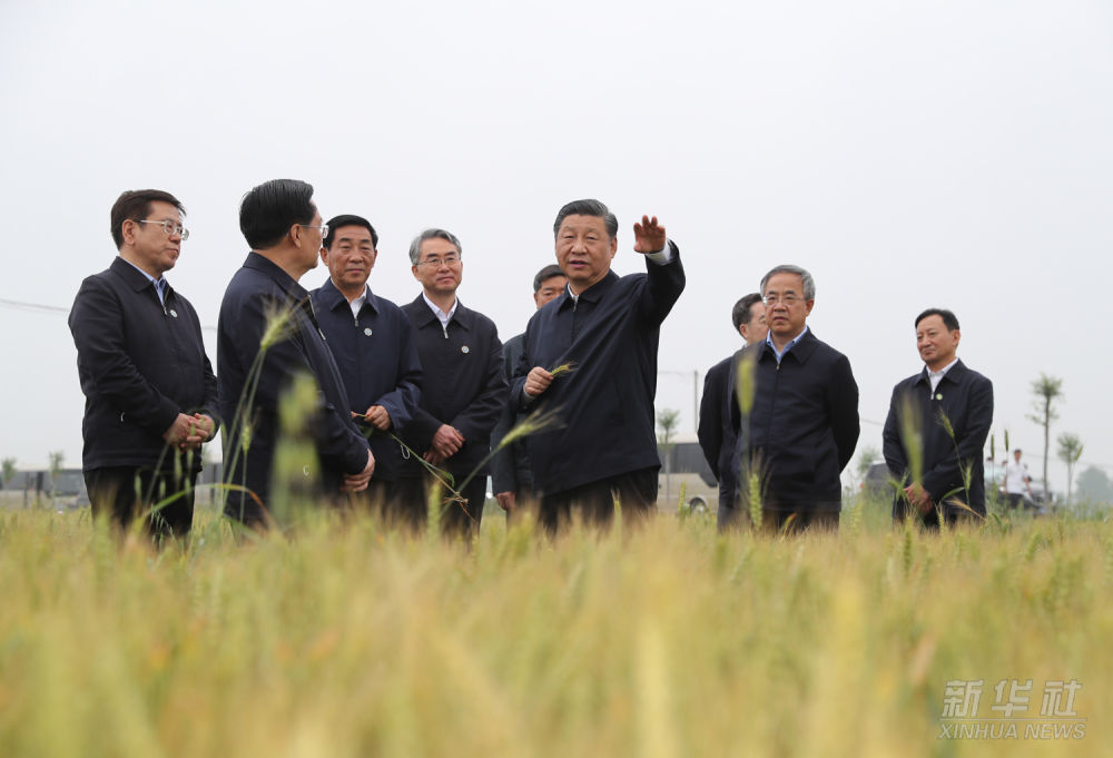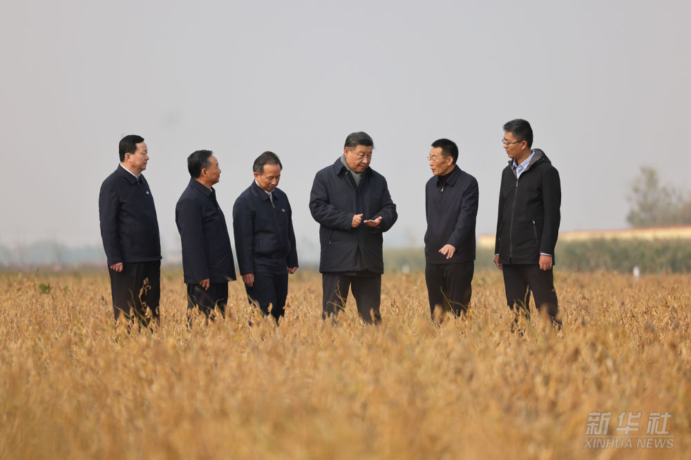 2021年10月22日下午,习近平在山东省济南市主持召开深入推动黄河流域生态保护和高质量发展座谈会并发表重要讲话。这是座谈会前,习近平21日上午在东营市黄河三角洲农业高新技术产业示范区考察时,走进田间察看大豆长势。