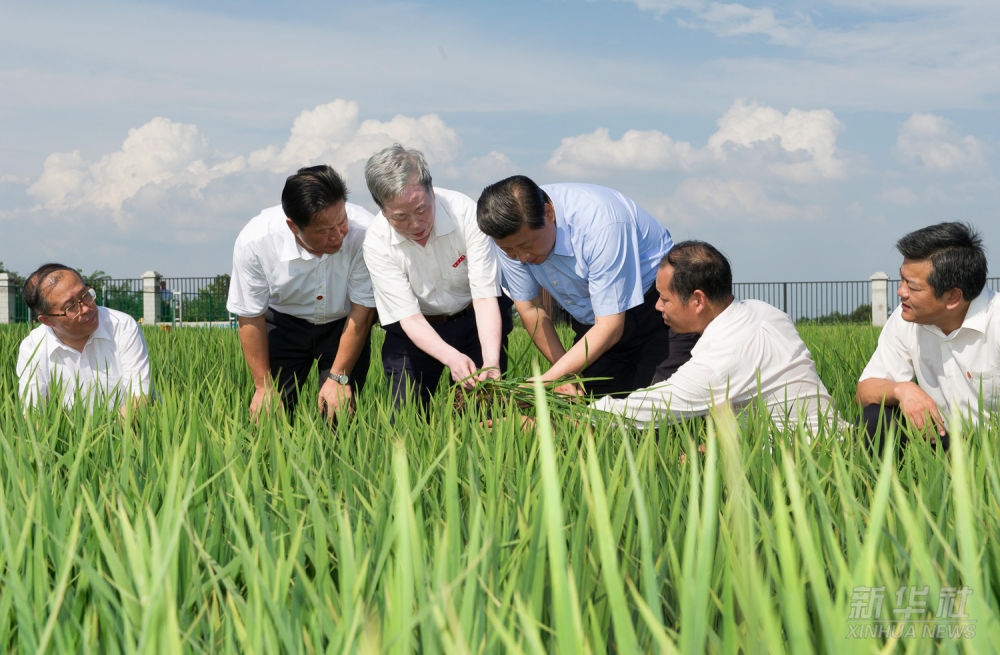 2013年7月21日至23日,习近平在湖北调研全面深化改革问题和经济运行情况。这是22日下午,习近平来到鄂州市鄂城区杜山镇东港村水稻育种基地考察。