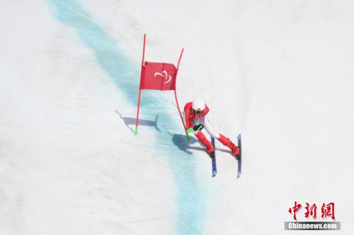 3月6日,中国选手梁景怡在比赛中。当日,北京2022年冬残奥会残奥高山滑雪男子超级大回转-站姿决赛在国家高山滑雪中心举行,中国选手梁景怡夺得冠军。中新社记者 刘冉阳 摄