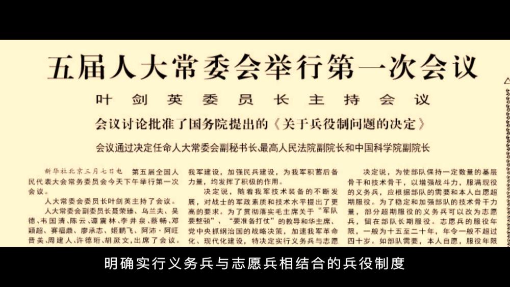 1978年3月7日,五届全国人大常委会第一次会议通过《关于兵役制问题的决定》,明确实行义务兵与志愿兵相结合的兵役制度。