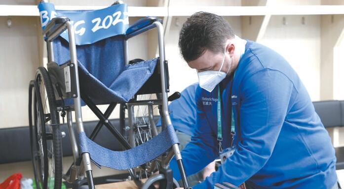 对残疾人来说,轮椅、假肢、矫形器等就像是他们的贴身“伙伴”,对残奥运动员而言,这些“伙伴”更是至关重要。为运动员提供运动器具及生活辅具的维修服务一直是冬残奥会的传统。北京冬残奥会期间,来自12个国家的40多名专业技术人员驻守3个冬残奥村和5个竞赛场馆,全天候为运动员们提供日常设备维修服务,确保他们能全身心投入比赛。这些专业技师中,不少人与残奥会有着不解之缘。