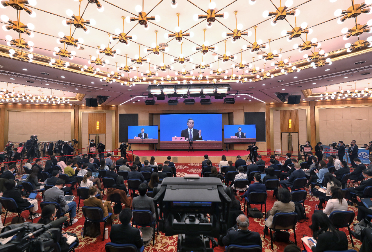 3月7日下午3时,在人民大会堂新闻发布厅举行的十三届全国人大五次会议记者会上,国务委员兼外交部长王毅就“中国外交政策和对外关系”相关问题答中外记者问。