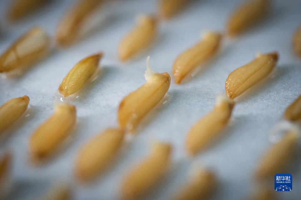 2021年2月26日,嫦娥五号搭载的太空稻种在华南农业大学国家植物航天育种工程技术研究中心温室萌芽。