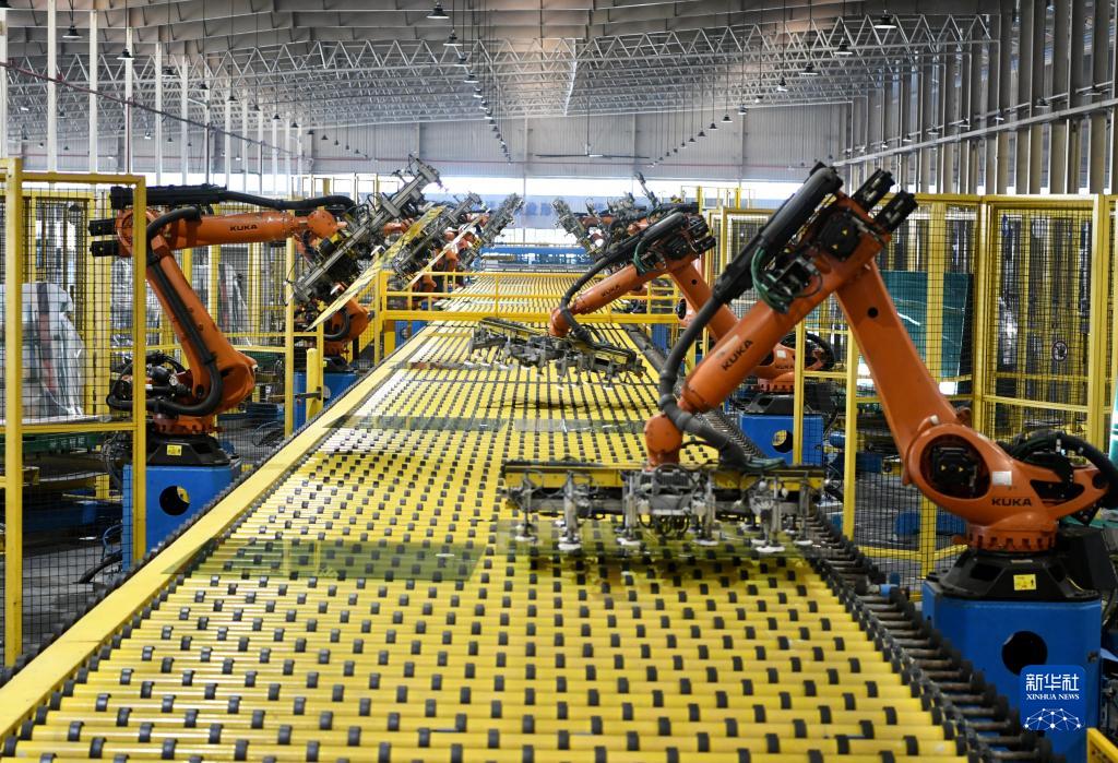在福建省福清市的福耀玻璃集团汽车玻璃生产车间,机械手在生产线上作业(2021年1月12日摄)。