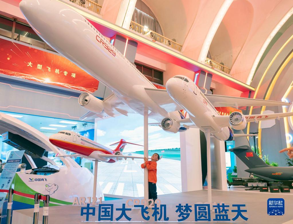2021年10月21日,一名小朋友在北京展览馆参观国家“十三五”科技创新成就展。