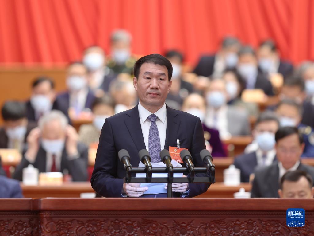 3月7日,全国政协十三届五次会议在北京人民大会堂举行第二次全体会议。这是刘振东委员代表全国工商联作大会发言。新华社记者 丁林 摄