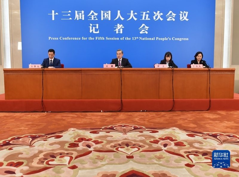 3月7日,十三届全国人大五次会议在北京人民大会堂新闻发布厅举行记者会,邀请国务委员兼外交部长王毅就“中国外交政策和对外关系”相关问题回答中外记者提问。为有效防控疫情,共同维护公共卫生与健康,记者会采用网络视频形式进行。 新华社记者 陈钟昊 摄
