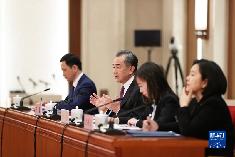 3月7日,十三届全国人大五次会议在北京人民大会堂新闻发布厅举行记者会,邀请国务委员兼外交部长王毅就“中国外交政策和对外关系”相关问题回答中外记者提问。为有效防控疫情,共同维护公共卫生与健康,记者会采用网络视频形式进行。 新华社记者 金立旺 摄