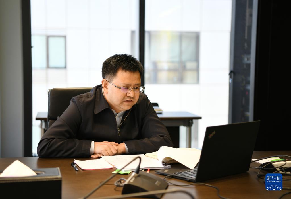 3月7日,中国人民银行金融市场司副司长马贱阳在北京同全国人大代表蔡仲光进行网络视频连线。新华社记者 任鹏飞 摄
