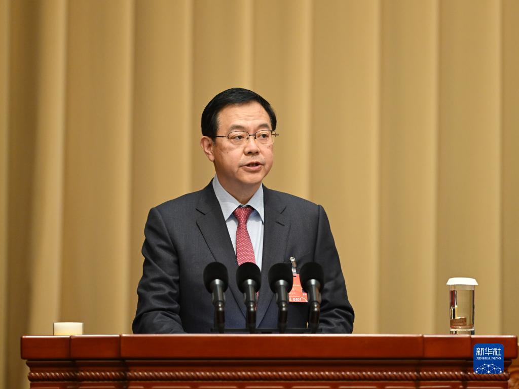 3月7日,全国政协十三届五次会议举行视频会议。12名委员作大会发言。这是在主会场,张恩迪委员代表致公党中央作大会发言。新华社记者 殷博古 摄