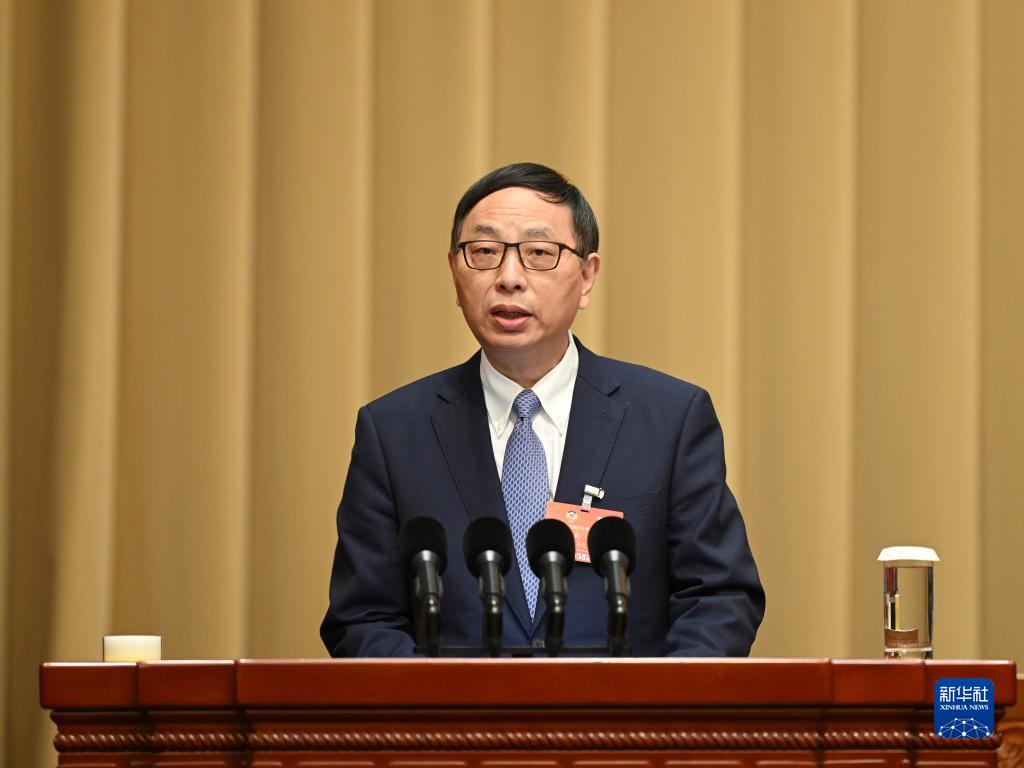 3月7日,全国政协十三届五次会议举行视频会议。12名委员作大会发言。这是在主会场,蔡威委员代表农工党中央作大会发言。新华社记者 殷博古 摄