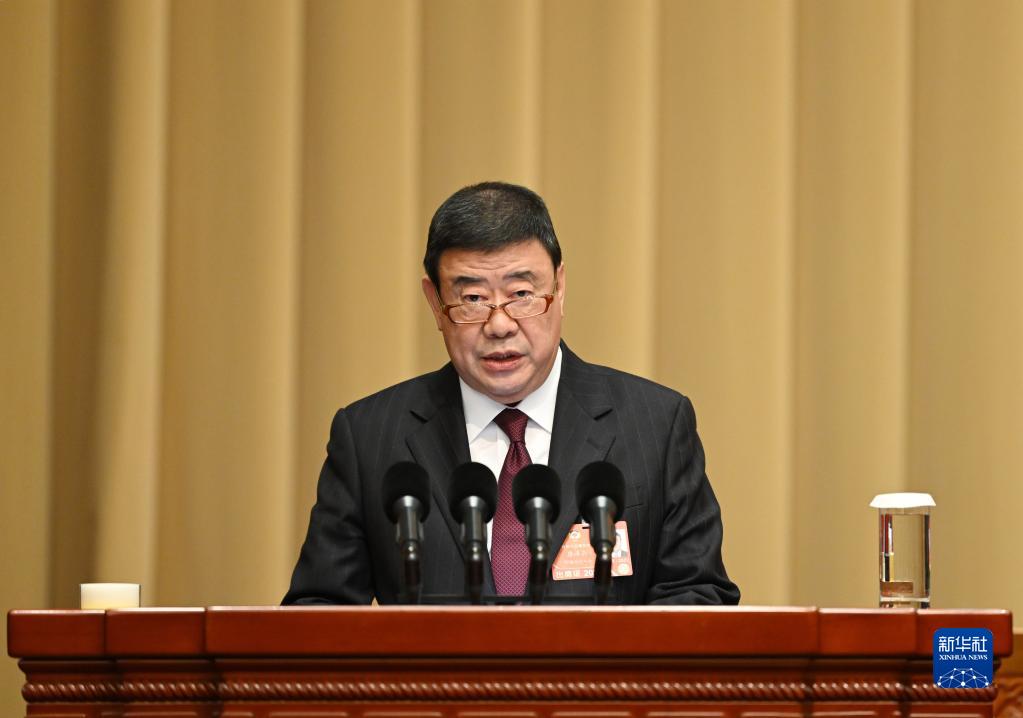 3月7日,全国政协十三届五次会议举行视频会议。12名委员作大会发言。这是廖泽云委员在主会场作大会发言。新华社记者 刘彬 摄