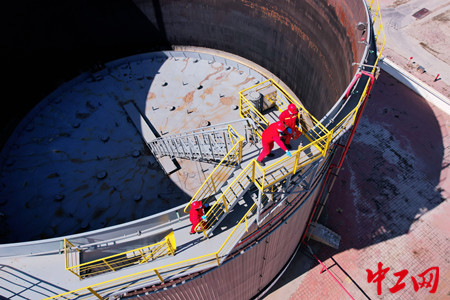 两个多小时后,3名女工越过5座原油储罐的2000多个台阶,有条不紊地完成了工作任务,她们站在罐顶的扶栏边,擦了擦脸上的热汗,眺望着远处的大海,脸上露出了开心而自信的笑容,远远望去,罐顶上的“石油红”格外鲜艳夺目。(中国石油冀东油田 杨军 王翔)