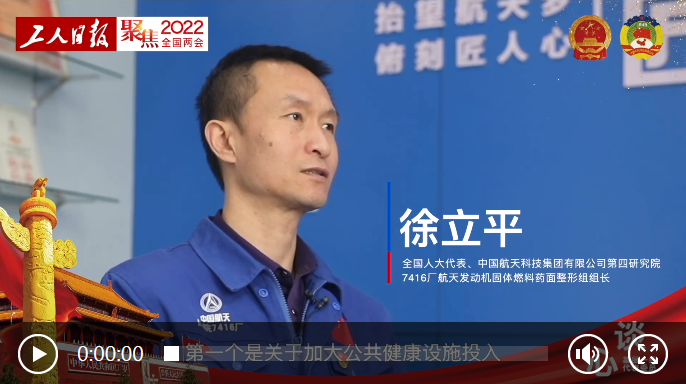 “今年上会,我带了两条建议。一个是关于加大公共健康设施投入的,另外一条是加快建设线上技能培训优质公共资源。”全国人大代表、中国航天科技集团有限公司第四研究院7416厂航天发动机固体燃料药面整形组组长徐立平在接受采访时表示。