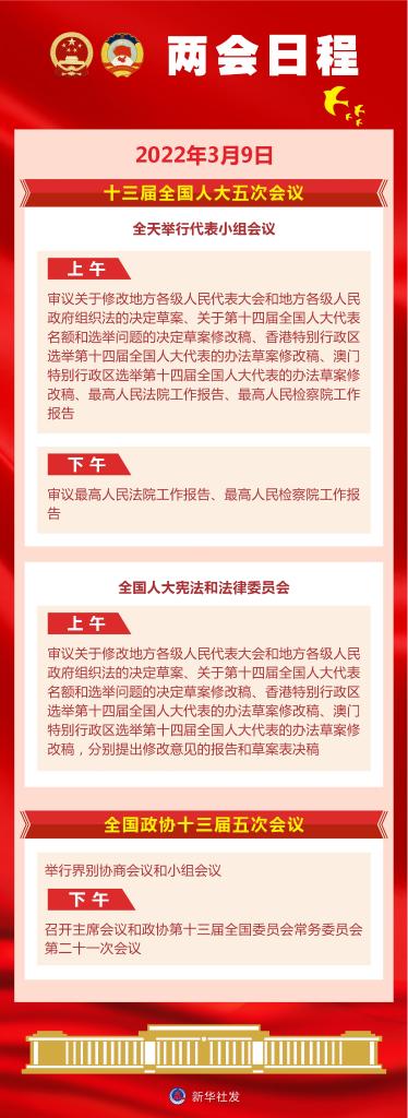 3月9日:人代会审议“两高”工作报告等 政协举行界别协商会议和小组会议