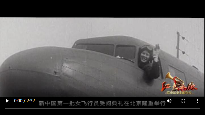 1952年3月8日,新中国第一批女飞行员受阅典礼在北京隆重举行。在万众瞩目中,女飞行员驾驶6架里-2型运输机从天安门广场飞过,光荣接受党和人民的首次检阅。