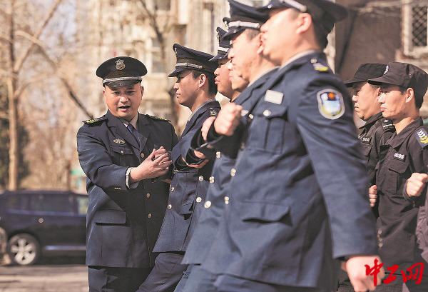 3月1日,李勇指导年轻的保安进行训练。工人日报—中工网记者 杨登峰 摄