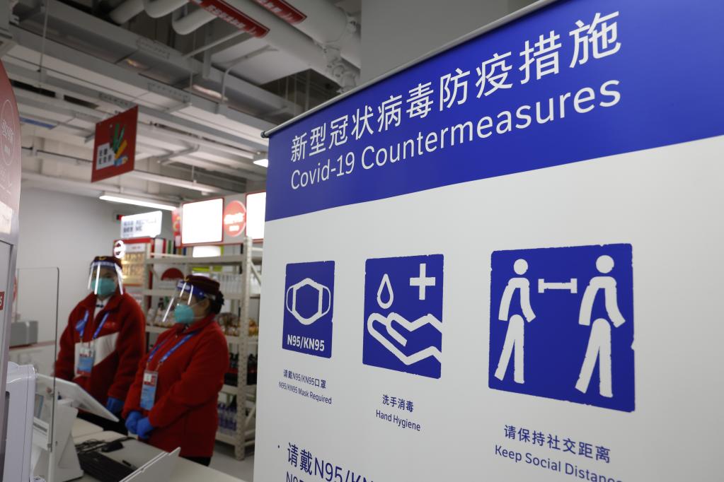 这是1月10日在主媒体中心内拍摄的防疫消毒用品。新华社记者徐子鉴摄