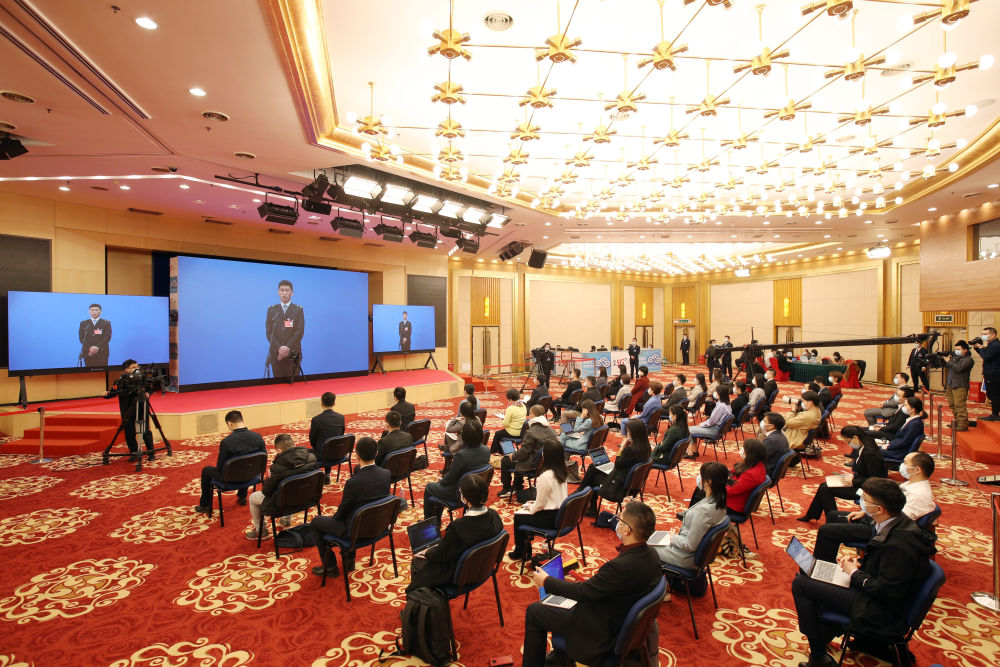 3月4日,全国政协十三届五次会议第一场“委员通道”采访活动在北京人民大会堂新闻发布厅举行。这是分会场。新华社记者 陈钟昊 摄