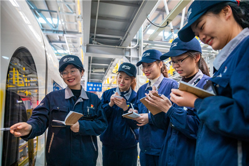 她们在生活中是女儿、妻子、母亲,在工作中是独当一面的巾帼之花。中铁上海局集团公司南京动车段的女职工,在不同岗位上发挥着重要的作用,为动车组的各个设备进行体检,处置动车组故障,做好动车组配件工具的仓储物流等工作。她们是动车所里的“蓝精灵”。(刘振宇 葛飞 吕晓聪)