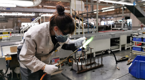 李春娇,大连海尔空调唯一的一名女焊工。她通过自己的努力,从一名普通的操作工成长为焊接高级技师,并培养了3名合格焊工,参与设计了4项改善项目,提高了焊接的产能和质量。在2022年铝制焊接技术革新中,李春娇带领其他焊工参与铝制管材焊接技术训练,并总结各种焊漏问题,与其他同事分析探讨钻研,成功降低了铝制焊接不良率。(于雪)