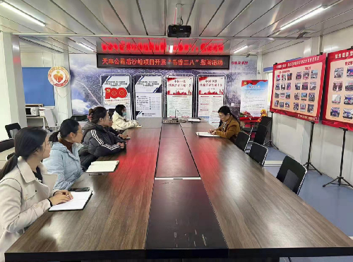 3月7日,施工现场7名女职工精心准备了自己喜欢的美文、诗歌等,倾心诵读,轮流分享,讲述自己的心得,将其中感受最深的部分娓娓道来,活动现场气氛热烈,处处传递着书香正能量。大家在《第一场雪》《面向大海 春暖花开》《再别康桥》等经典文学作品中感受美,争做新时代智慧女性。原来,这里是中铁北京局天丰公司后沙峪项目部举行的“书香三八”慰问活动。