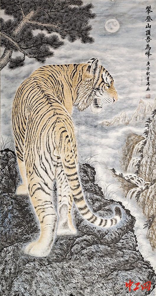 《攀登山顶吾为峰》(国画,98cm×180cm),作者董涛,“冰雪情·冬奥梦”全国职工冰雪主题绘画活动入围奖作品