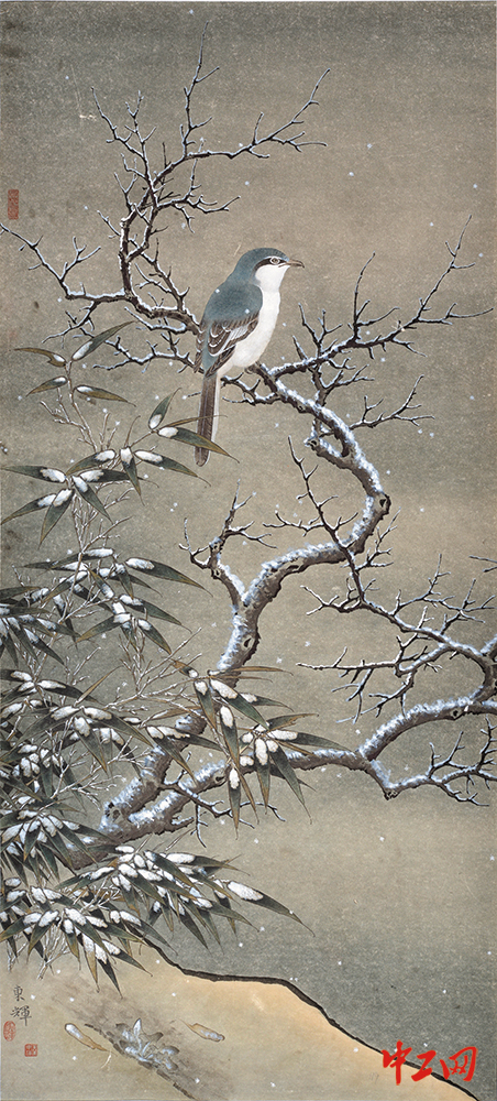 《冬日雪景》(国画,50cm×113cm),作者吕东辉,“冰雪情·冬奥梦”全国职工冰雪主题绘画活动优秀奖作品