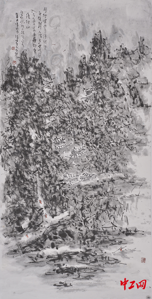 《无题4》(国画,68cm×138cm),作者江海滨,“冰雪情·冬奥梦”全国职工冰雪主题绘画活动优秀奖作品
