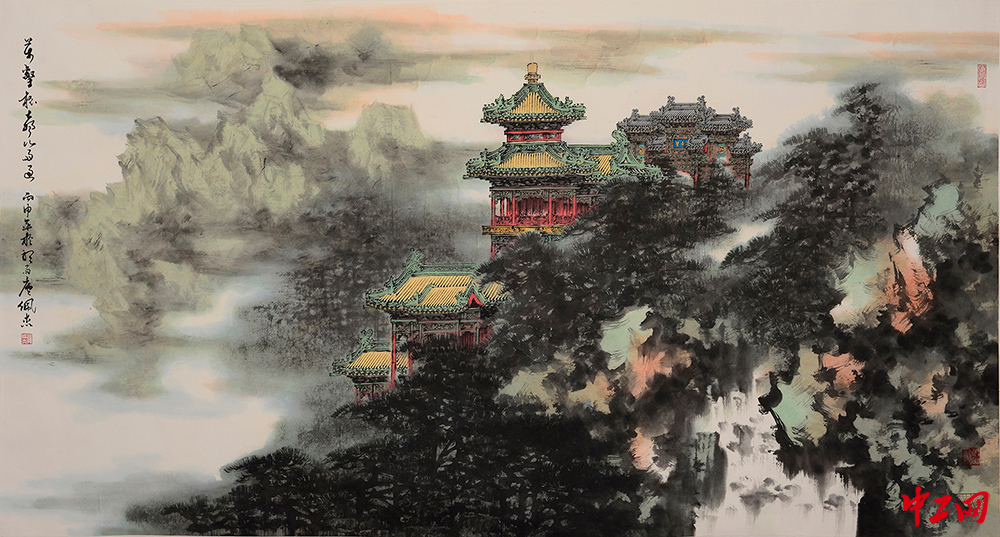 《万壑松声山雨过》(国画,180cm×96cm),作者孙佩杰,“冰雪情·冬奥梦”全国职工冰雪主题绘画活动优秀奖作品