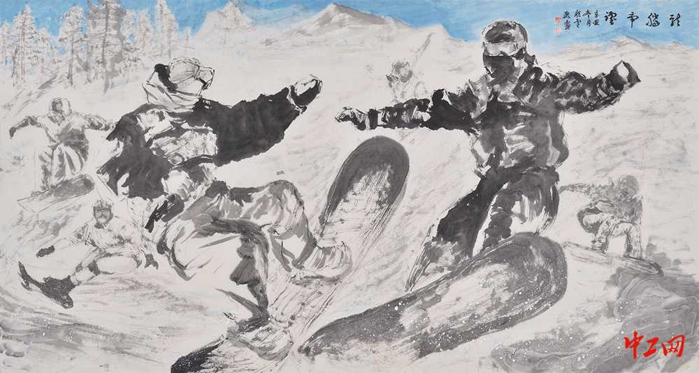 《龙腾虎跃》(国画,180cm×97cm),作者程雪丽,“冰雪情·冬奥梦”全国职工冰雪主题绘画活动优秀奖作品