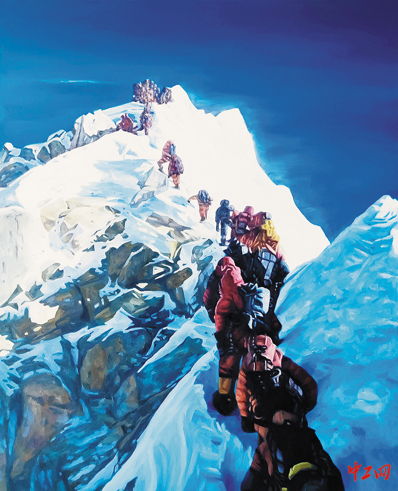 《珠峰飘带》(油画,110cm×134cm),作者黄拥军,“冰雪情·冬奥梦”全国职工冰雪主题绘画活动优秀奖作品