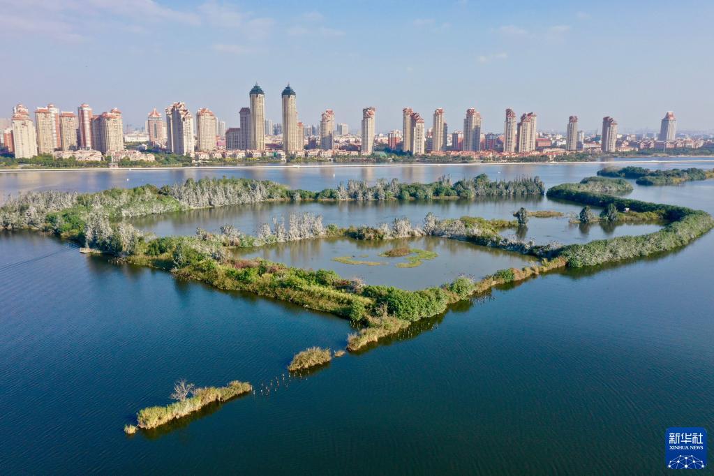 厦门市集美区城市湿地景观(2021年12月8日摄,无人机照片)。(新华社记者姜克红摄)