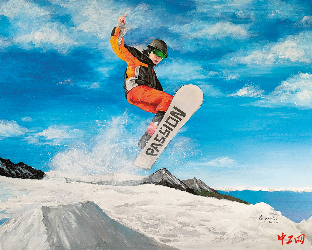 《梦想起航》(油画,100cm×80cmm),作者刘馨茹,“冰雪情·冬奥梦”全国职工冰雪主题绘画活动优秀奖作品
