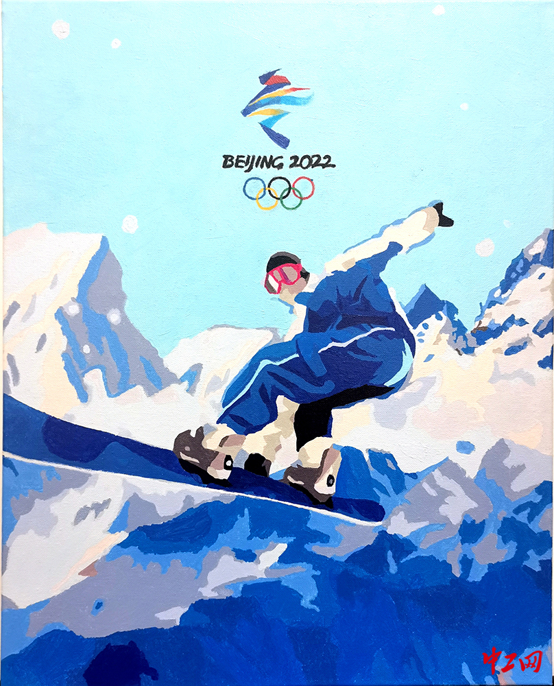 《飞翔》(油画,40cm×50cm),作者袁辙,“冰雪情·冬奥梦”全国职工冰雪主题绘画活动入围奖作品