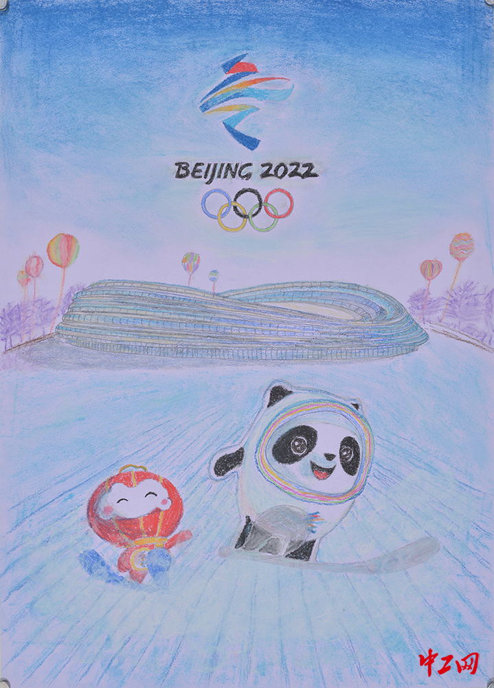《相约冰丝带》(水彩画,38cm×53cm),作者李琳,“冰雪情·冬奥梦”全国职工冰雪主题绘画活动入围奖作品