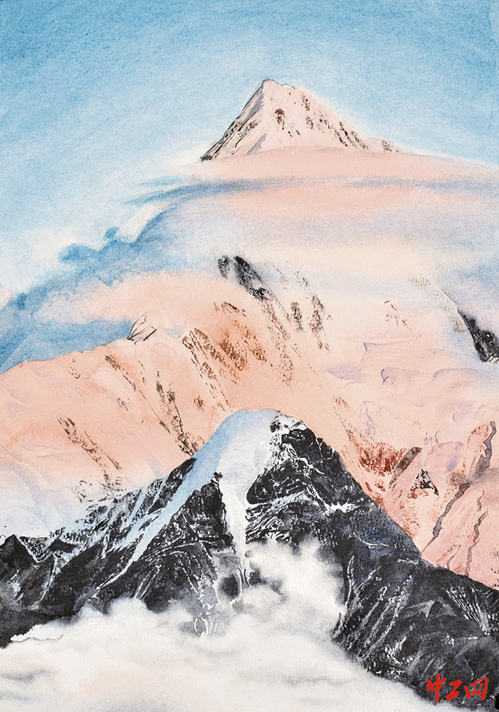 《冰雪世界》(水彩画,26cm×38cm),作者徐洋,“冰雪情·冬奥梦”全国职工冰雪主题绘画活动入围奖作品