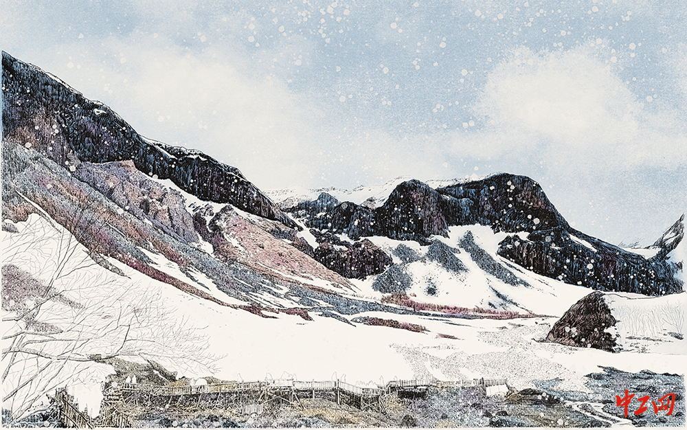 《壮美山河》(电子水粉画,25cm×16cm),作者邸哲清,“冰雪情·冬奥梦”全国职工冰雪主题绘画活动入围奖作品