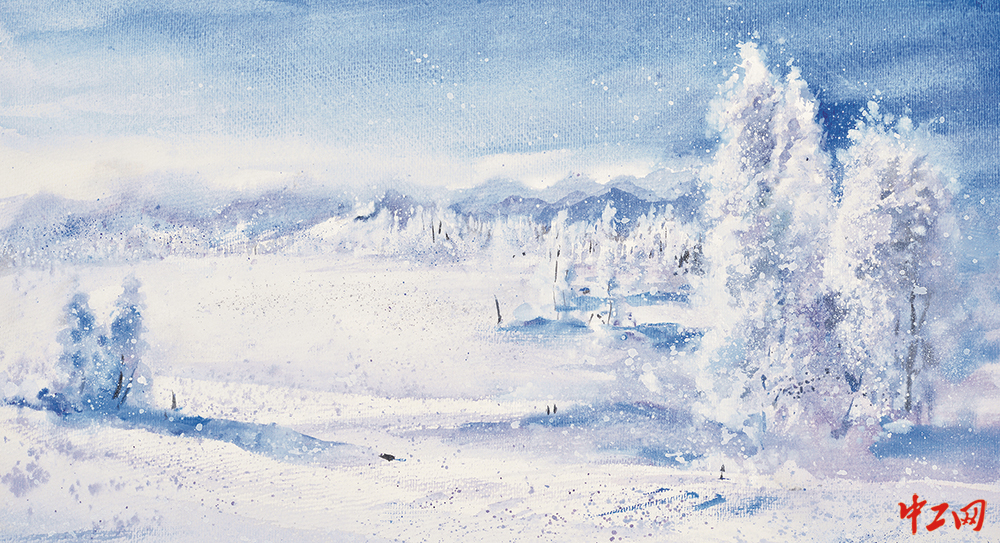 《冰雪世界 2》(水彩画,50cm×28cm),作者刘志伟,“冰雪情·冬奥梦”全国职工冰雪主题绘画活动入围奖作品