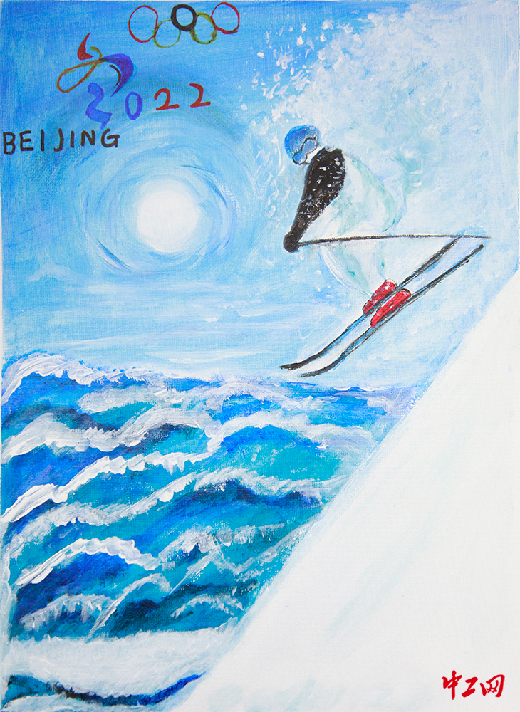 《冰雪情 冬奥梦 10》(丙烯画,30cm×40cm),作者时永军,“冰雪情·冬奥梦”全国职工冰雪主题绘画活动入围奖作品